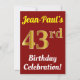 This birthday party invitation design features a message like "Jean-Paul’s 43rd Birthday Celebration!", where the name can be personalised, and where the number "43rd" has a faux gold-like appearance. It also features a red coloured background. The event details on the back can be personalised. It could be used to invite people to somebody’s forty third birthday celebration or birthday party. [~Z0000120]