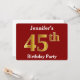 Red, Faux Gold 45th Birthday Party + Custom Name Invitation