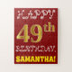 This fun and simple birthday puzzle design features the message "HAPPY 49th BIRTHDAY", with the "49th" having a faux/imitation gold-like colour appearance. It also features a custom name, and a red coloured background. It could be a fun and special way to deliver a personalised birthday greeting to somebody who is celebrating their forty ninth birthday. [~Z0000200]