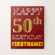 Red, Faux Gold 50th Birthday + Custom Name Puzzle