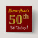 Red, Faux Gold 50th Birthday, With Custom Name 15 Cm Square Badge