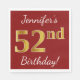 Red, Faux Gold 52nd Birthday + Custom Name Napkin