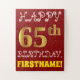 Red, Faux Gold 65th Birthday + Custom Name Puzzle