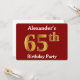 Red, Faux Gold 65th Birthday Party + Custom Name Invitation