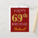 Red, Faux Gold 69th Birthday + Custom Name Postcard