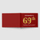 This guest book design features the ordinal number "69th" with a faux/imitation gold-like appearance. It also features a customised name, and a red coloured background. It could be used at a party for somebody celebrating their sixty ninth birthday. [~Z0000055]