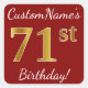 Red, Faux Gold 71st Birthday + Custom Name Sticker