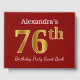 This guest book design features the ordinal number "76th" with a faux/imitation gold-like appearance. It also features a personalised name, and a red coloured background. It could be used at a party for somebody celebrating their seventy sixth birthday. [~Z0000055]