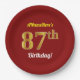 Red, Faux Gold 87th Birthday + Custom Name Paper Plate