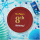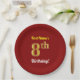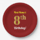 Red, Faux Gold 8th Birthday + Custom Name Paper Plate