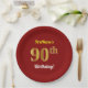 Red, Faux Gold 90th Birthday + Custom Name Paper Plate