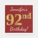 Red, Faux Gold 92nd Birthday + Custom Name Napkin