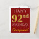 Red, Faux Gold 92nd Birthday + Custom Name Postcard