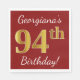 Red, Faux Gold 94th Birthday + Custom Name Napkin
