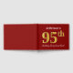 This guest book design features the ordinal number "95th" with a faux gold-like appearance. It also features a personalised name, and a red coloured background. It could be used at a party for somebody celebrating their ninety fifth birthday. [~Z0000055]