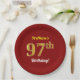 Red, Faux Gold 97th Birthday + Custom Name Paper Plate