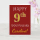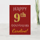 Red, Faux Gold 9th Wedding Anniversary + Name Card