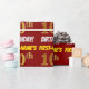This wrapping paper design features a message like "FIRST-NAME’S 10th BIRTHDAY!", with the "10th" having a faux/imitation gold-like colour appearance, and with the name and "BIRTHDAY" in a fun, bold font. The name can be customised, and the background is coloured red. Wrapping paper like this could perhaps be used when wrapping birthday gifts being given to somebody in celebration of their tenth birthday. [~Z0000204]