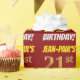 This wrapping paper design features a message like "JEAN-PAUL’S 21st BIRTHDAY!", with the "21st" having a faux/imitation gold-like colour appearance, and with the name and "BIRTHDAY" in a fun, bold font. The name is customisable, and the background is coloured red. Wrapping paper like this could perhaps be used when wrapping birthday gifts being given to somebody in celebration of their twenty first birthday. [~Z0000204]
