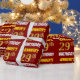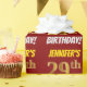 This wrapping paper design features a message like "JENNIFER’S 29th BIRTHDAY!", with the "29th" having a faux/imitation gold-like colour appearance, and with the name and "BIRTHDAY" in a fun, bold font. The name can be customised, and the background is coloured red. Wrapping paper like this could perhaps be used when wrapping birthday gifts being given to somebody in celebration of their twenty ninth birthday. [~Z0000204]