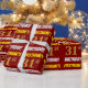 This wrapping paper design features a message like "FIRSTNAME’S 31st BIRTHDAY!", with the "31st" having a faux/imitation gold-like colour appearance, and with the name and "BIRTHDAY" in a fun, bold font. The name can be personalised, and the background is coloured red. Wrapping paper like this could perhaps be used when wrapping birthday gifts being given to somebody in celebration of their thirty first birthday. [~Z0000204]