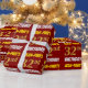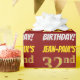 This wrapping paper design features a message like "JEAN-PAUL’S 32nd BIRTHDAY!", with the "32nd" having a faux/imitation gold-like colour appearance, and with the name and "BIRTHDAY" in a fun, bold font. The name can be personalised, and the background is coloured red. Wrapping paper like this could perhaps be used when wrapping birthday gifts being given to somebody in celebration of their thirty second birthday. [~Z0000204]