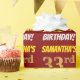This wrapping paper design features a message like "SAMANTHA’S 33rd BIRTHDAY!", with the "33rd" having a faux/imitation gold-like colour appearance, and with the name and "BIRTHDAY" in a fun, bold font. The name can be customised, and the background is coloured red. Wrapping paper like this could perhaps be used when wrapping birthday gifts being given to somebody in celebration of their thirty third birthday. [~Z0000204]