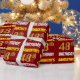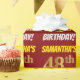 This wrapping paper design features a message like "SAMANTHA’S 48th BIRTHDAY!", with the "48th" having a faux/imitation gold-like colour appearance, and with the name and "BIRTHDAY" in a fun, bold font. The name can be personalised, and the background is coloured red. Wrapping paper like this could perhaps be used when wrapping birthday gifts being given to somebody in celebration of their forty eighth birthday. [~Z0000204]
