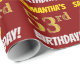 This wrapping paper design features a message like "SAMANTHA’S 53rd BIRTHDAY!", with the "53rd" having a faux/imitation gold-like colour appearance, and with the name and "BIRTHDAY" in a fun, bold font. The name can be personalised, and the background is coloured red. Wrapping paper like this could perhaps be used when wrapping birthday gifts being given to somebody in celebration of their fifty third birthday. [~Z0000204]