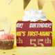 This wrapping paper design features a message like "FIRST-NAME’S 55th BIRTHDAY!", with the "55th" having a faux/imitation gold-like colour appearance, and with the name and "BIRTHDAY" in a fun, bold font. The name can be personalised, and the background is coloured red. Wrapping paper like this could perhaps be used when wrapping birthday gifts being given to somebody in celebration of their fifty fifth birthday. [~Z0000204]