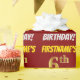This wrapping paper design features a message like "FIRSTNAME’S 6th BIRTHDAY!", with the "6th" having a faux/imitation gold-like colour appearance, and with the name and "BIRTHDAY" in a fun, bold font. The name is customisable, and the background is coloured red. Wrapping paper like this could perhaps be used when wrapping birthday gifts being given to somebody in celebration of their sixth birthday. [~Z0000204]