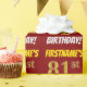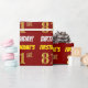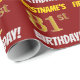 This wrapping paper design features a message like "FIRSTNAME’S 81st BIRTHDAY!", with the "81st" having a faux/imitation gold-like colour appearance, and with the name and "BIRTHDAY" in a fun, bold font. The name can be personalised, and the background is coloured red. Wrapping paper like this could perhaps be used when wrapping birthday gifts being given to somebody in celebration of their eighty first birthday. [~Z0000204]