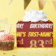This wrapping paper design features a message like "FIRST-NAME’S 83rd BIRTHDAY!", with the "83rd" having a faux/imitation gold-like colour appearance, and with the name and "BIRTHDAY" in a fun, bold font. The name can be personalised, and the background is coloured red. Wrapping paper like this could perhaps be used when wrapping birthday gifts being given to somebody in celebration of their eighty third birthday. [~Z0000204]