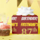 This wrapping paper design features a message like "FIRSTNAME’S 87th BIRTHDAY!", with the "87th" having a faux/imitation gold-like colour appearance, and with the name and "BIRTHDAY" in a fun, bold font. The name is customisable, and the background is coloured red. Wrapping paper like this could perhaps be used when wrapping birthday gifts being given to somebody in celebration of their eighty seventh birthday. [~Z0000204]
