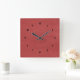 Red faux leather texture square wall clock