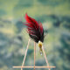Artistically drawn, antique fountain pen embellished with dark red feather on white background.