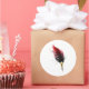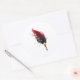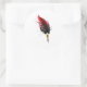 Artistically drawn, antique fountain pen embellished with dark red feather on white background.