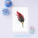 Artistically drawn, antique fountain pen embellished with dark red feather on white background.