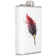 Artistically drawn, antique fountain pen embellished with dark red feather on white background.