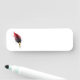 Red feather pen with gold nib name tag