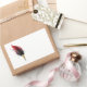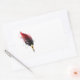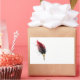 Artistically drawn, antique fountain pen embellished with dark red feather on white background.