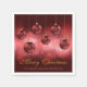Destei's original illustration of red and golden yellow colour festive Christmas baubles that have a snowflake pattern on them. The background is a beautiful red bokeh background. There are also two personalizable text areas.
