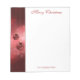 Destei's original illustration of red and golden yellow colour festive Christmas baubles that have a snowflake pattern on them. The background is a beautiful red bokeh. Next to the image there is space for writing. On the top there is a personalizable text area that now reads: "Merry Christmas" while on the bottom there is space for a family name or other custom text.