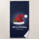 Red Festive Santa Hat On Blue With Custom Text Beach Towel