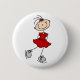 A girl stick figure with a red dress is ice skating on a customisable button.