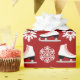 Christmas wrapping paper for figure skaters with a red background, white snowflakes, and figure skates in a repeating pattern! Perfect for Christmas, birthdays, or any other occasion!