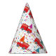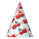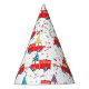 A cute illustration of a red fire truck pattern with party hats, blowing party horns and confetti raining down. The adorable red fire engine rushing off to put out a fire. Ideal celebration design for a birthday party or any other special event. Ideal birthday party decor or birthday gift for emergency vehicle truck enthusiasts.
