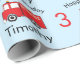 Red Fire Truck Pattern Boy's Name & Age Birthday Wrapping Paper