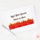 A custom canning label for hot sauces, relishes, salsa or other flaming hot recipes with graphic art of red and orange flames at the bottom of the design.
