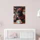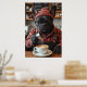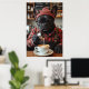 Meet the coolest barista on four legs—a French Bulldog dressed in a red and black flannel shirt, suspenders, and thick-rimmed glasses. He’s behind the espresso machine, intensely focused on latte art with a milk frother in paw. His wide eyes and slight twitch say it all: too much “Bark Roast.” With pun-filled chalkboard specials behind him, this funny artwork is perfect for coffee bars, offices, or dog lovers with a strong brew obsession.